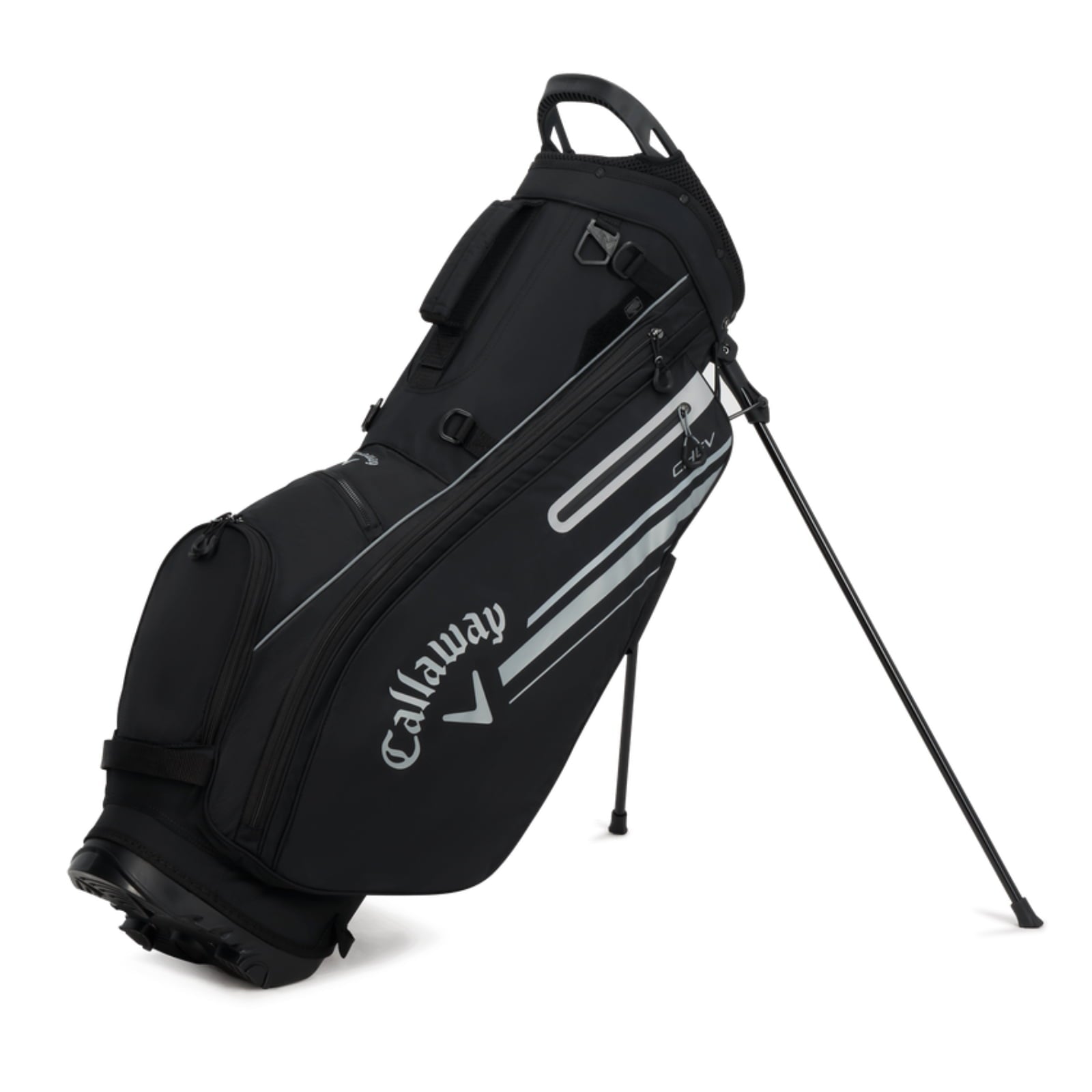The new Callaway Chev offers a sleek and versatile midsized stand bag. The Chev features updated branding, ample storage and 4-way club organization at an exceptional value. Weighs 5 lbs.Brand:Callaway Assembled Product Weight:7.72 lb Color:Black Manufacturer Part Number:5123029 Manufacturer:CALLAWAY Assembled Product Dimensions (L x W x H):36.37 x 16.25 x 10.87 Inches